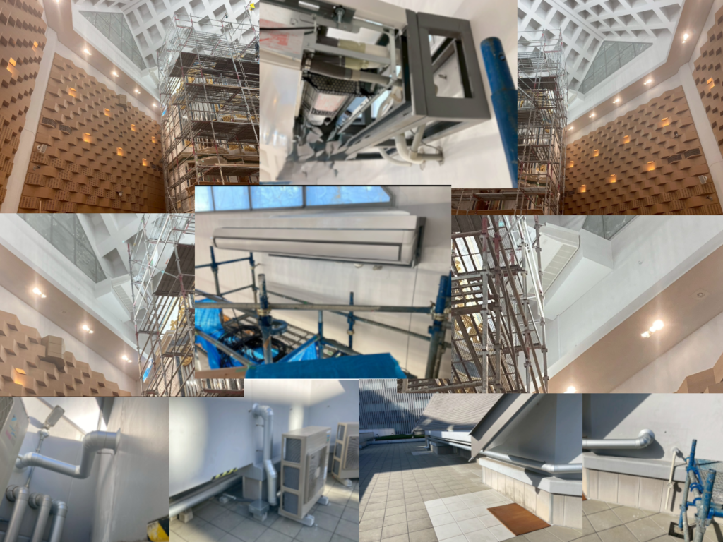 パイプオルガン制作工事と並行して、上部スペースへの空調機設置を行いました。